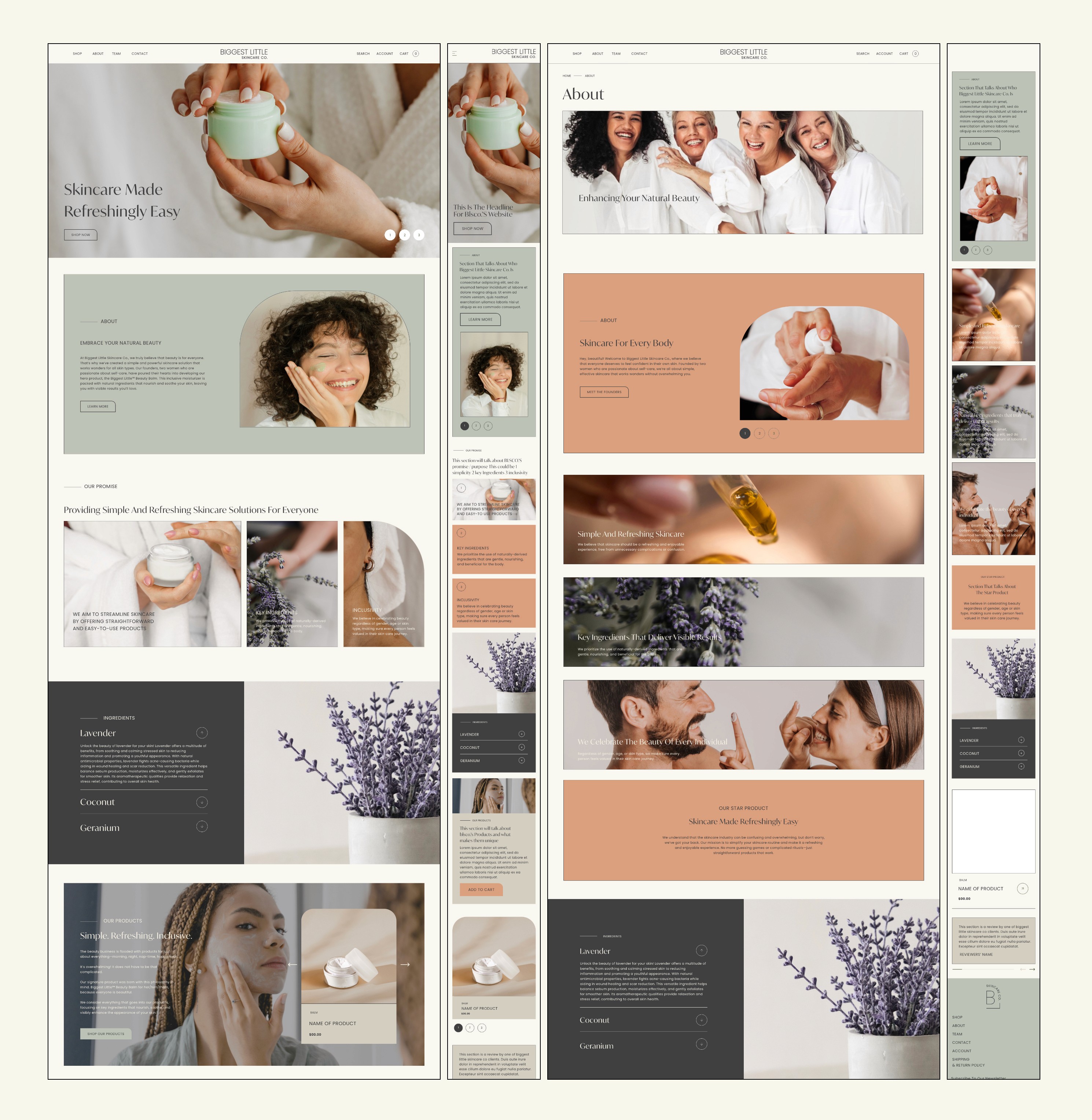 Designed a complete brand identity and Shopify e-commerce site for a family-owned natural skincare business, creating a cohesive visual system rooted in earth tones and simplicity that reflects their inclusive, straightforward approach to beauty.