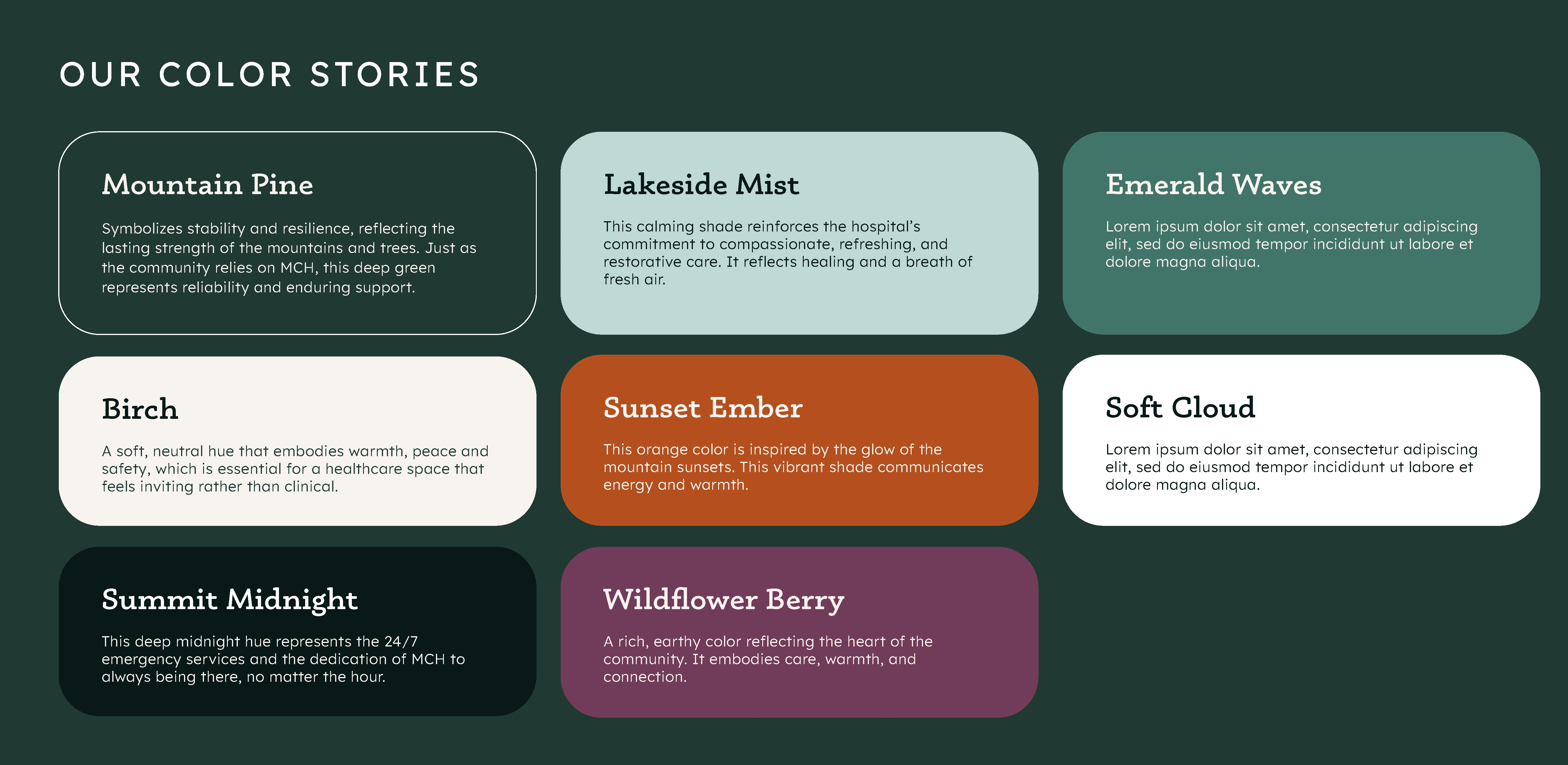 A regional hospital celebrating 75 years needed to communicate both approachability and clinical excellence, your neighbor's hospital with high-quality care. My design manager created the new logo and I expanded it into a complete brand system: comprehensive guidelines, design tokens, and applications across print collateral and digital touchpoints. Currently designing their website to bring the refreshed identity online.